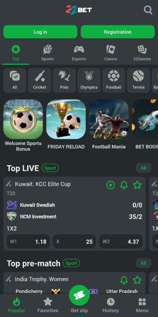 If you need access from your computer, simply open your browser, go to the 22bet website, log in to your account and continue betting or playing casino games. All the basic features such as live betting, bonuses and transactions work seamlessly.