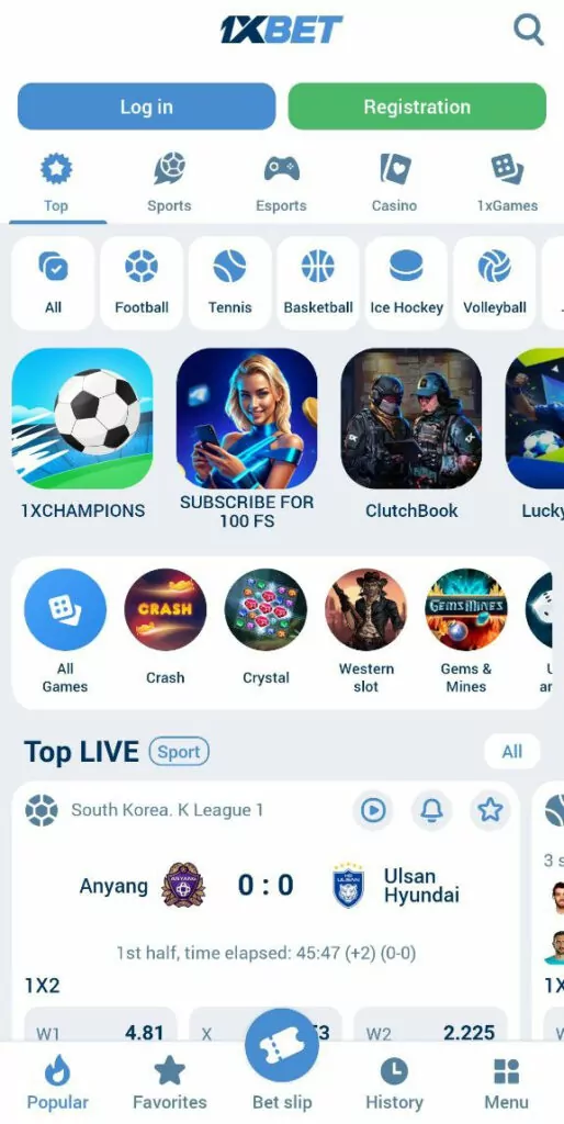 1xBet app is a full-fledged mobile version of the platform with fine-tuned interface. The content is translated into 20+ languages (there is English and Hindi), bets on 30 sports are supported, and matches are broadcast in HD quality. If you decide to download 1xBet, you can modify the main screen: hide unnecessary sections, change the order of blocks, add favourite events. Authorisation by biometrics, high speed response and offline access to betting history work faster than the classic web version.