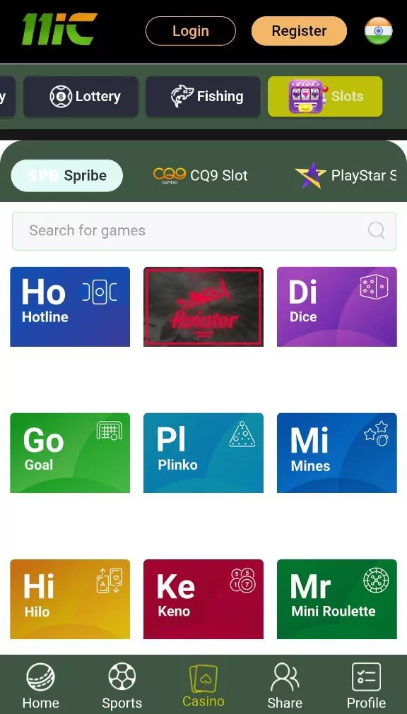 In the casino section of the app you can find well-known providers such as Spribe, Playtech and PG Soft. All the entertainment loads instantly and runs smoothly and it is very comfortable, especially for playing slots. When it comes to genres in the 11ic app, you can try: