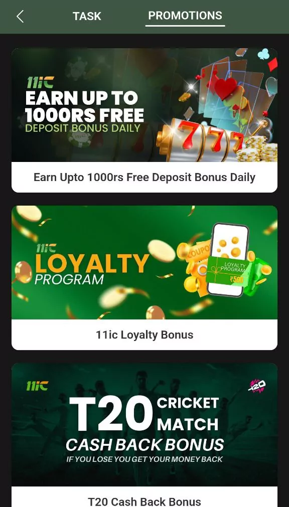 For new users, 11ic offers a welcome bonus of 100% up to INR 50,000. To activate this bonus, the following conditions must be met: