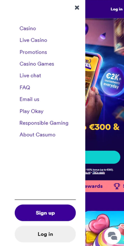 When you open the Casumo app, you can immediately see that the team has made sure that the interface is pleasant and easy to use. The primary colours – white and purple – create a comfortable atmosphere, while large icons and high-contrast elements help to navigate the app easily. The app menu is conveniently located, and the sections you need – from betting to live casino and bonuses – are always at your fingertips.