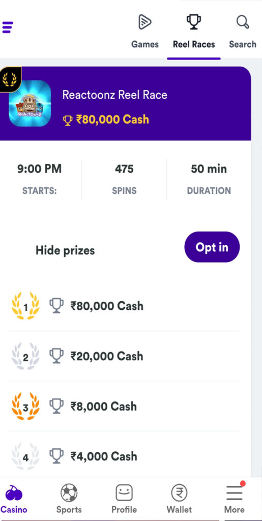 For sports betting enthusiasts, Casumo doubles your first deposit by offering a 100% bonus up to INR 10,000. This bonus is activated with a minimum deposit of 700 INR and has a wagering requirement of 6x. You can use it within 7 days of activation. With this bonus, it will be even easier for you to explore the rich selection of sporting events available at Casumo.